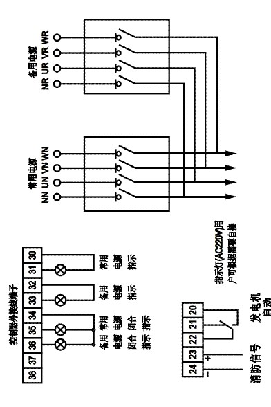 B型:其功能包括:手动-自动转换、失压、欠压、超压与断相转换、转换延时设置,提供发电机启动触头,LED显示。可增加消防